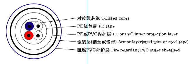 煤礦用聚乙烯絕緣鋼帶鎧裝阻燃聚氯乙烯護套電話電纜 PE insulated steel tape armored fire retardant PVC sheathed telephone cables for use in mines |