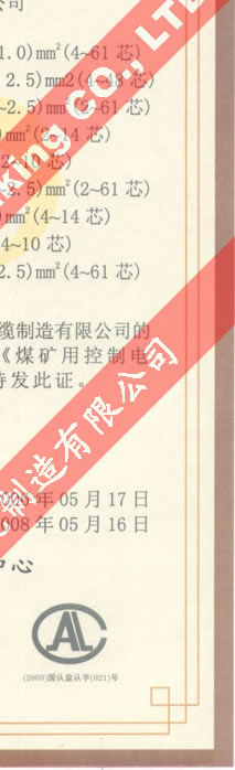 國家采煤機(jī)械質(zhì)量監(jiān)督檢驗(yàn)中心檢驗(yàn)合格證--煤礦用阻燃電纜(MKVVRP-450/750)