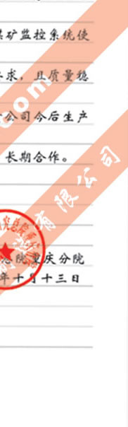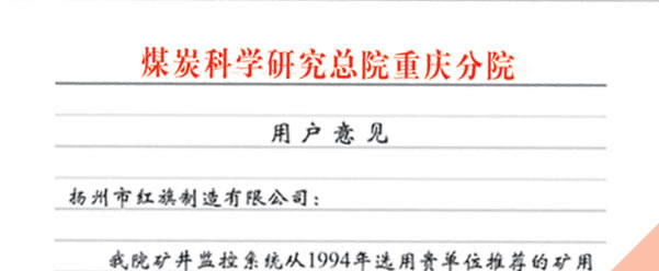 煤炭科學(xué)院總院重慶分院對我公司長期以來產(chǎn)品各項性能符合要求、質(zhì)量穩(wěn)定、交貨及時、服務(wù)周到的贊譽(yù)