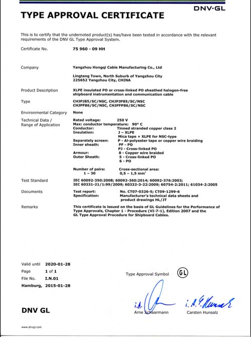 GL德國(guó)船級(jí)社GL認(rèn)證(船用通信電纜)