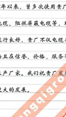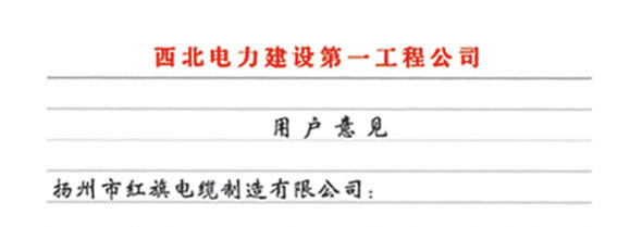 西北電力建設第一工程公司在多年使用我公司多種電纜產品后對我公司產品質量和服務的評價