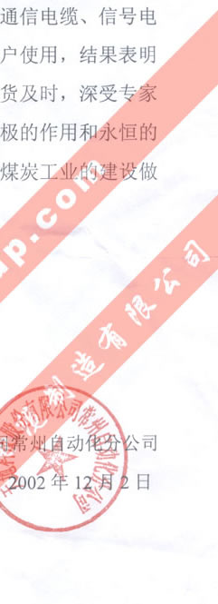 天地科技股份有限公司常州自動化分公司評價我公司產(chǎn)品質(zhì)量穩(wěn)定、性能可靠、服務周到、交貨及時、深受專家和領導好評的函
