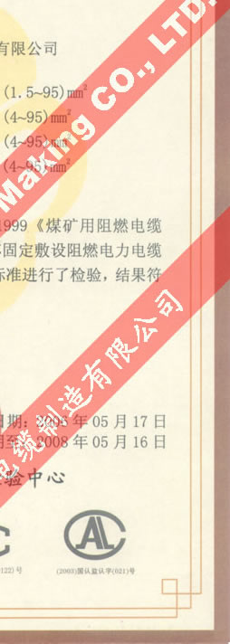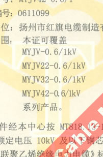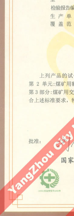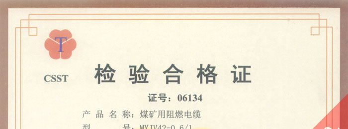 國家采煤機(jī)械質(zhì)量監(jiān)督檢驗(yàn)中心檢驗(yàn)合格證--煤礦用阻燃電纜(MYJV42-0.6/1)