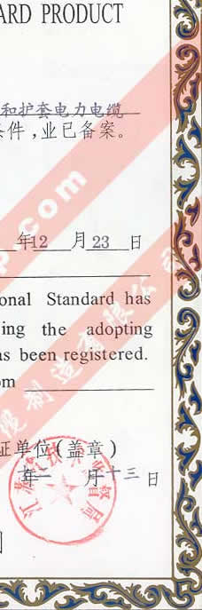 國家技術監(jiān)督局采用國際標準證書(聚氯乙烯絕緣和護套電力電纜)
