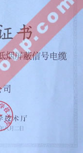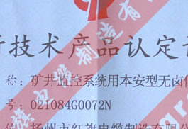 高新技術(shù)產(chǎn)品認(rèn)定證書(礦井監(jiān)控系統(tǒng)用本安型無鹵低煙屏蔽信號(hào)電纜)