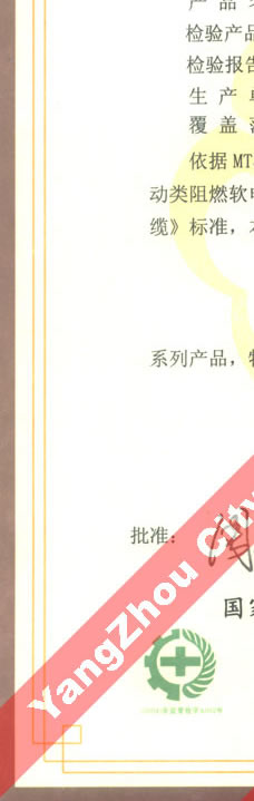 國家采煤機(jī)械質(zhì)量監(jiān)督檢驗(yàn)中心檢驗(yàn)合格證--煤礦用阻燃電纜(MZ-0.3/0.5)