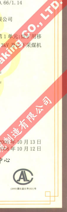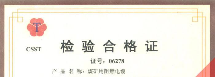 國家采煤機械質(zhì)量監(jiān)督檢驗中心檢驗合格證--煤礦用阻燃電纜(MC-0.38/0.66,MC-0.66/1.14)