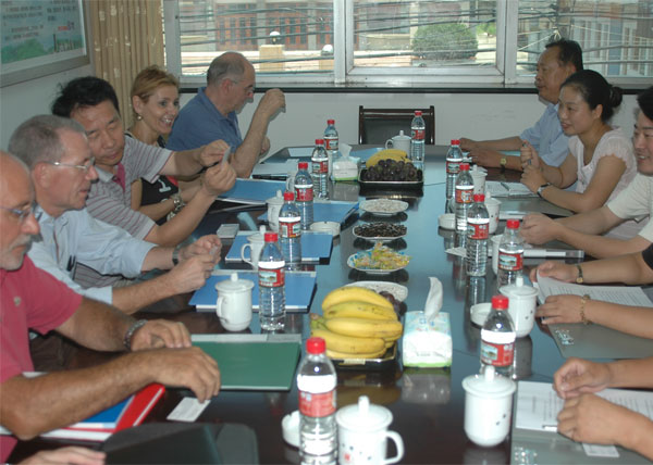 公司領(lǐng)導(dǎo)與意大利客商進(jìn)行商務(wù)洽談