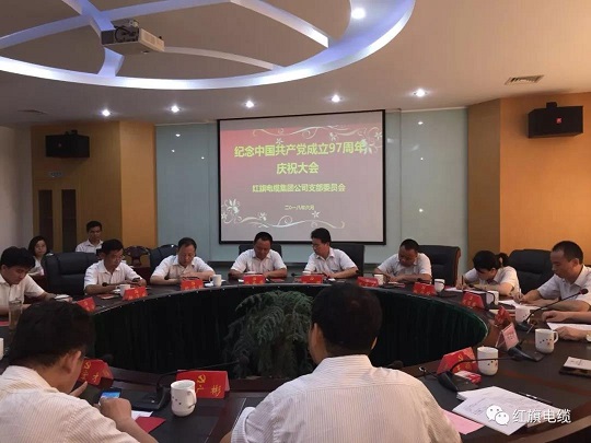 2018年6月30日上午,揚(yáng)州市紅旗電纜集團(tuán)召開慶祝中國(guó)共產(chǎn)黨成立97周年暨預(yù)備黨員轉(zhuǎn)正大會(huì),會(huì)議由集團(tuán)黨支部書記陳佑欣同志主持,集團(tuán)所有黨員、正部級(jí)以上同志參加了本次會(huì)議。
