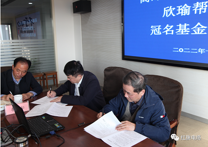 陳佑欣、陳冠瑜先生代表公司向欣瑜幫扶基金現(xiàn)場捐贈首批基金20萬元,高郵市老區(qū)扶貧基金會為他們頒發(fā)了捐贈證書。