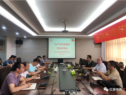 6月17日,徐州市產(chǎn)品質(zhì)量監(jiān)督檢驗(yàn)中心(江蘇省質(zhì)檢院)專家崔祥柱、無(wú)錫市明珠電纜有限公司專家馮耀才、揚(yáng)州市市場(chǎng)質(zhì)量監(jiān)督管理局產(chǎn)品質(zhì)量處處長(zhǎng)田雨組成專家組蒞臨紅旗電纜公司進(jìn)行生產(chǎn)許可證換證現(xiàn)場(chǎng)審查。紅旗電纜公司總經(jīng)理陳冠瑜、副總經(jīng)理曾廣彬以及各部門負(fù)責(zé)人配合專家組審核。